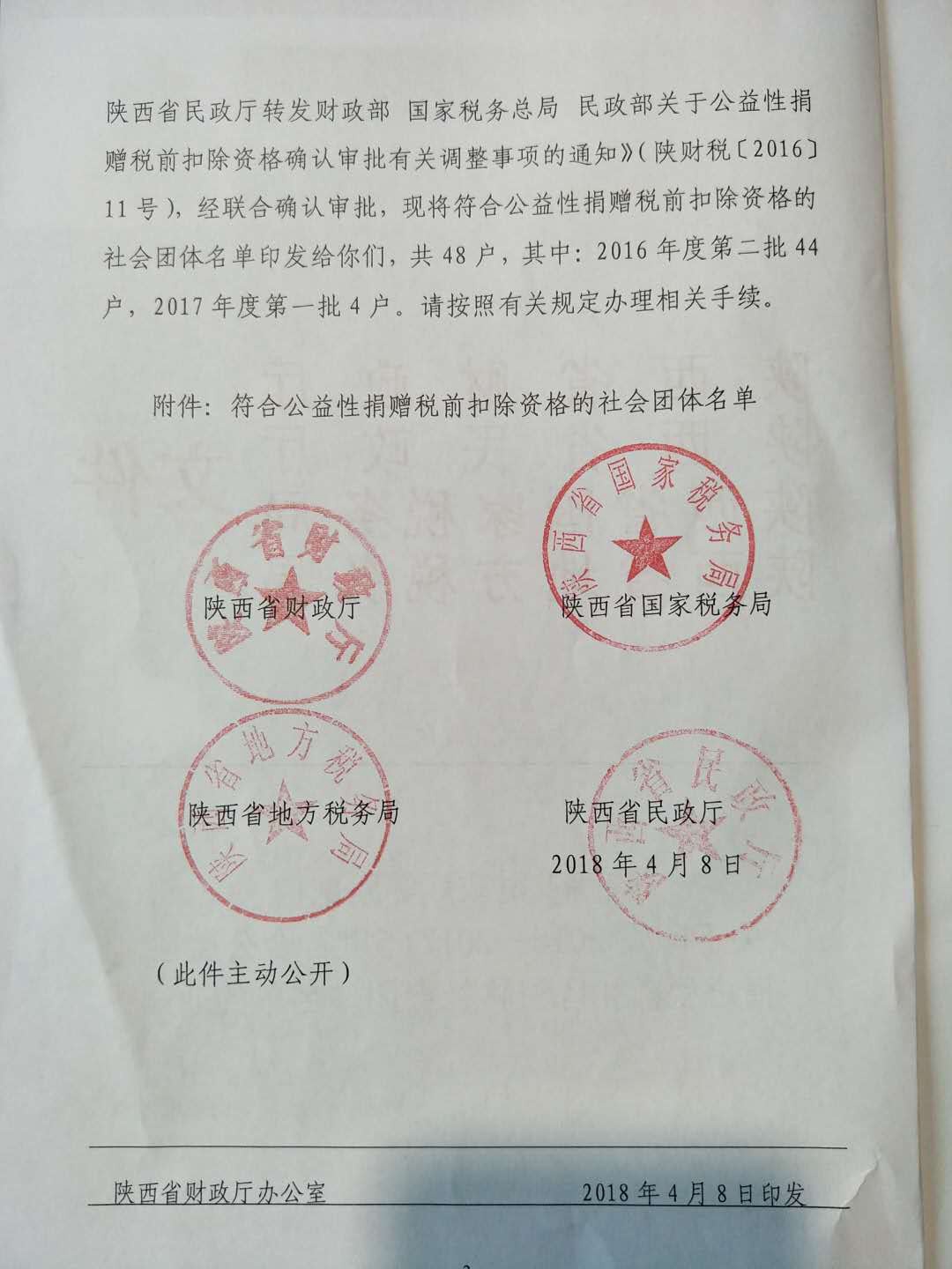 获2016年度公益性捐赠税前扣除资格