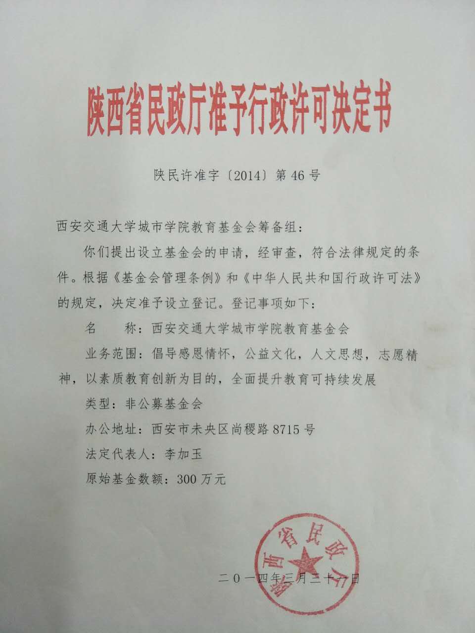 2014年登记管理机关审批成立